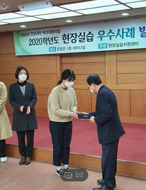 쾌거를 달성하였다. 이번 현장실습 우수사례발표는 현장실습 종료 이후 우리대학 15개 학과의 치열한 경쟁속에서 학과별 대표사례를 선발하여 실습의 우수사례와 성과확산에 있어