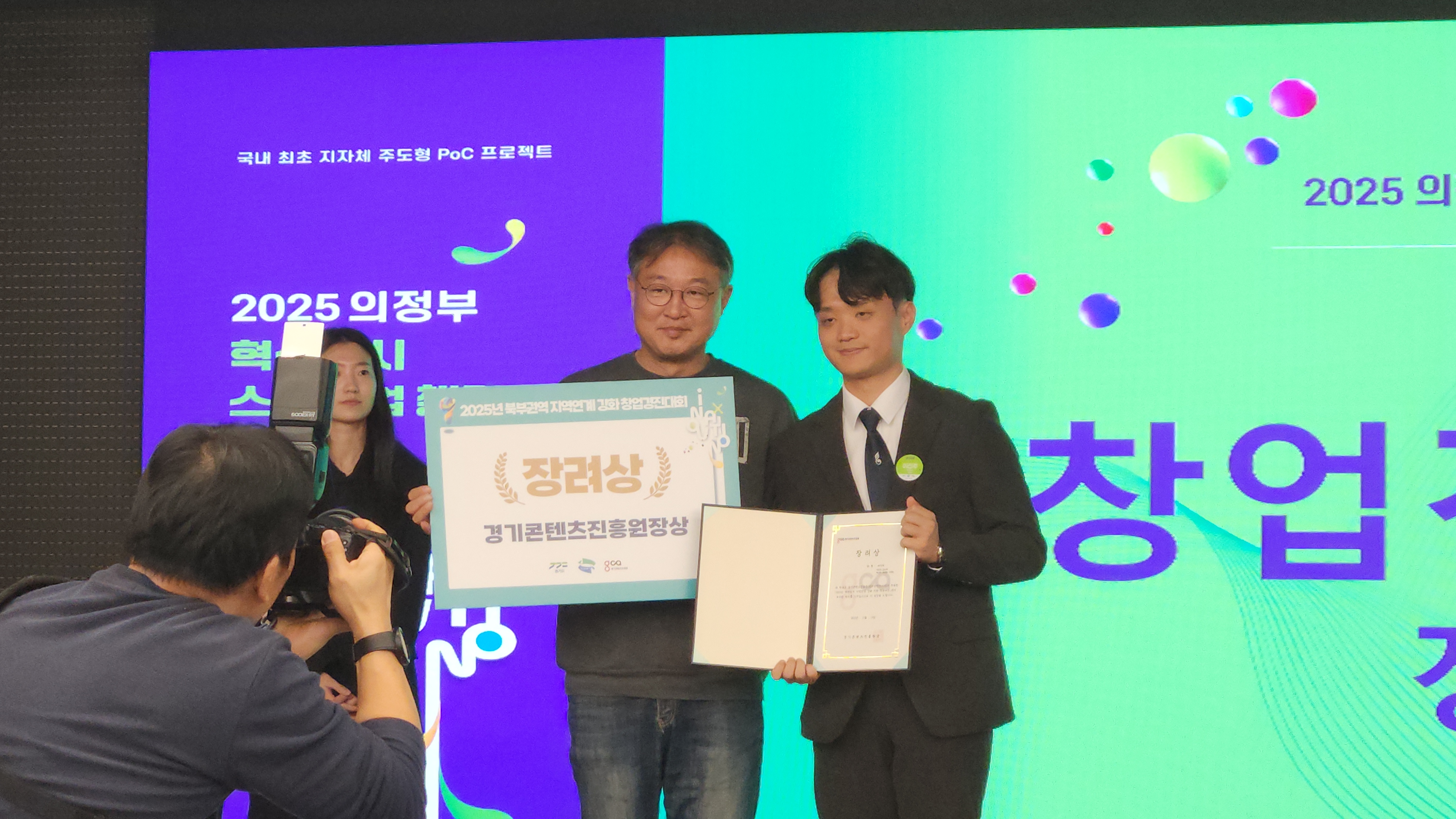 안녕하세요 서영인 여러분~기쁜소식을 전합니다! 전공심화 3학년 재학생으로 구성된 서지회팀이 경기콘텐츠진흥원에서 주관하는 2025년 경기북부대학 창업경진대회에서 장려상을 수상하였습니다!